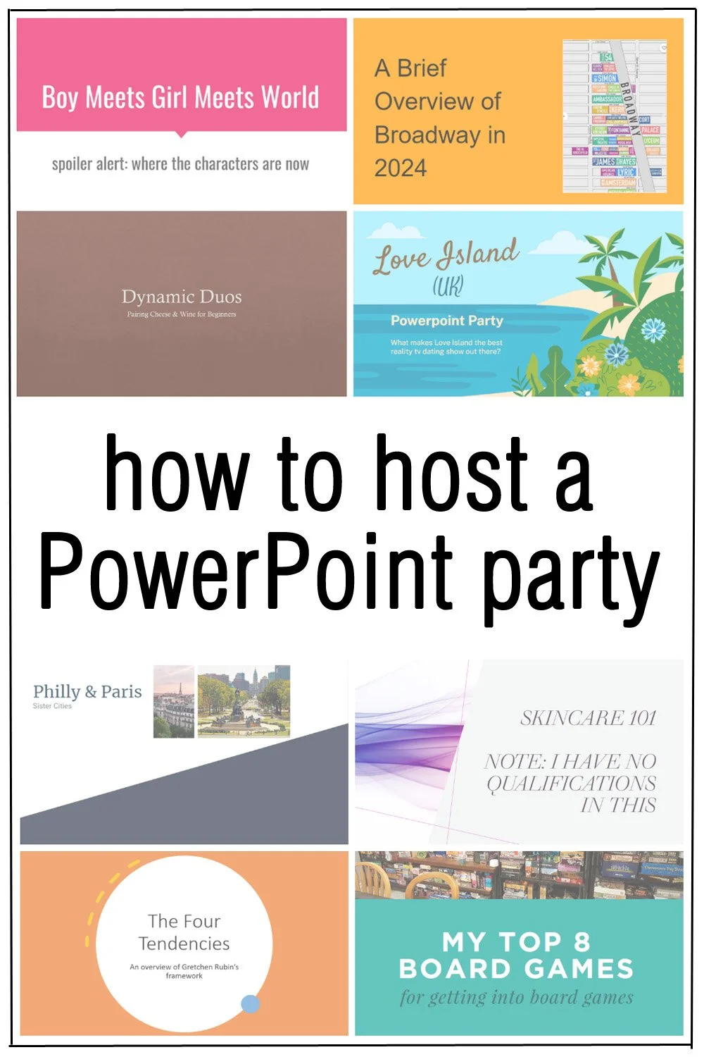 When PowerPoint parties (also known as Lightning Presentation Parties) swept the internet a few years ago, many people sent Instagram photos and articles to me saying, “this sounds like you!” It took me at least four years to finally give it a try, but last year I hosted my first “PowerPoint Party” where guests came equipped with a “5-minute” presentation on the subject of their choice. It was absolutely a hit, and I think this will be a twice-a-year party going forward.